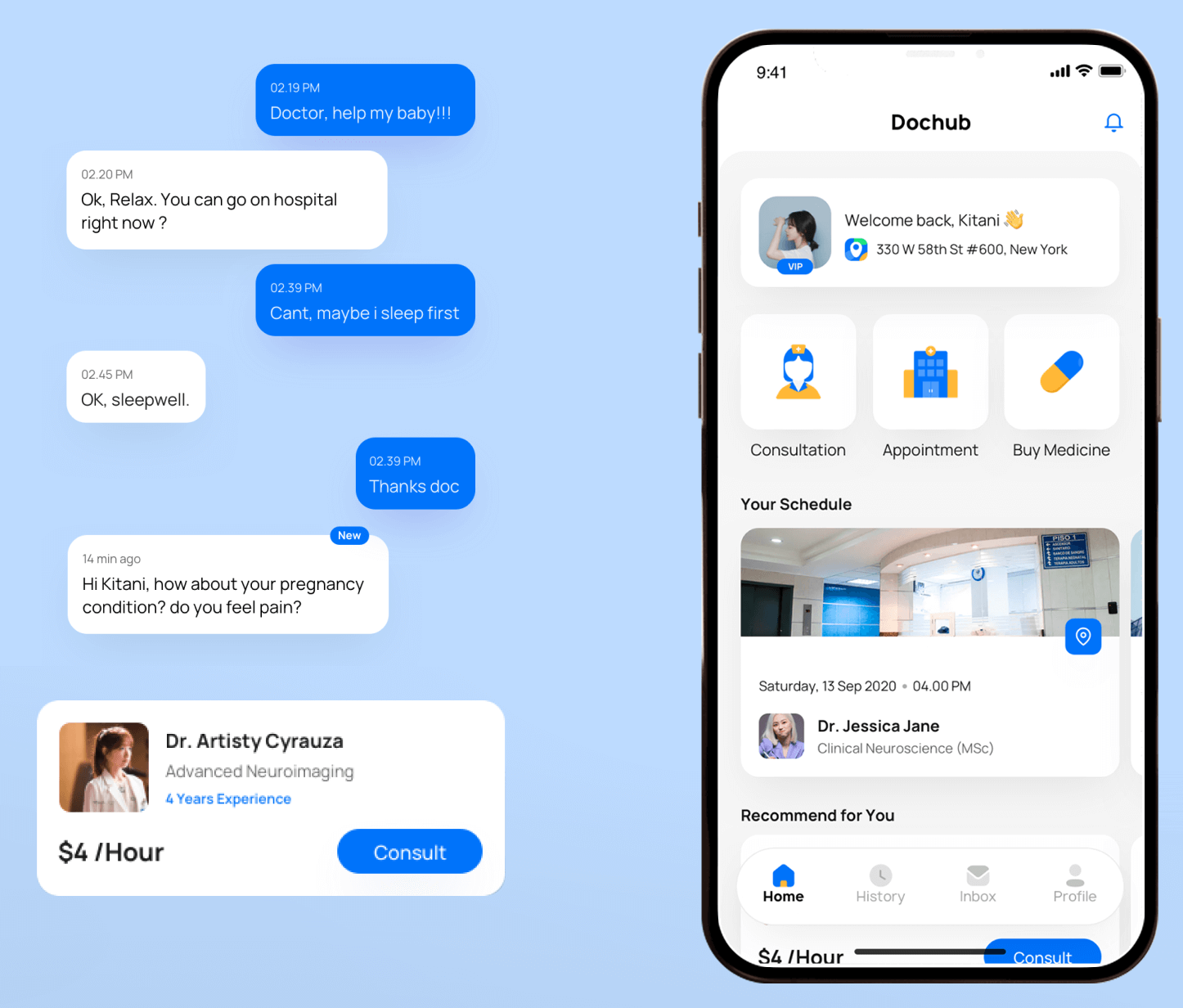To address the challenges faced by hospitals and rural populations in accessing quality healthcare, we propose a comprehensive mobile application it call “Dochub” The app will offer telemedicine services, enabling virtual consultations with doctors and specialists, along with secure messaging and digital prescriptions to ensure continuous dochub support. Patients will easily book appointments through the app, which will include reminders to reduce missed visits. Medication management features will help patients track their medications, receive dose reminders, and order prescription refills online, ensuring adherence to treatment plans.