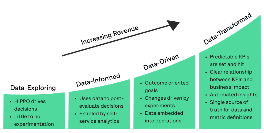 Everyone across teams and functions is looking at the same metrics and dashboards, and any new hire will quickly learn data-driven principles as they join. You’ve invested in the right areas that drive your business growth levers and committed to delivering on business goals accordingly